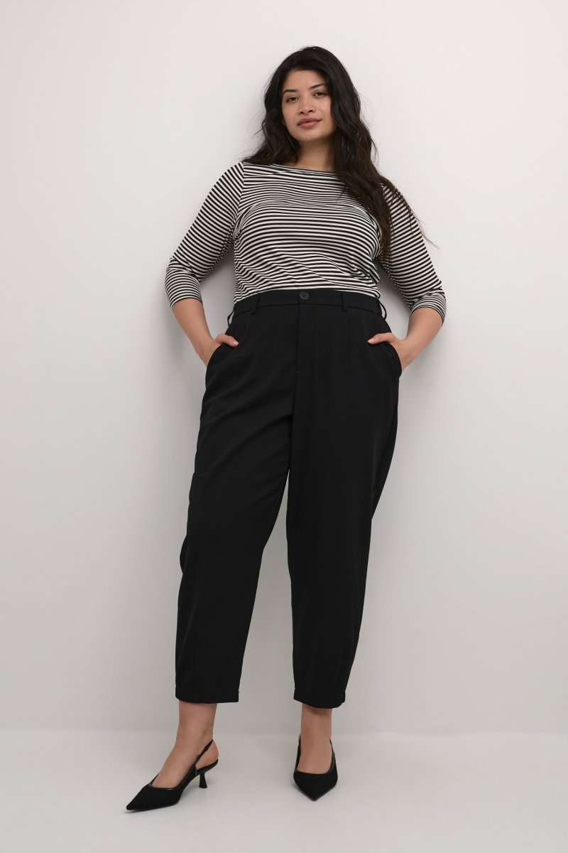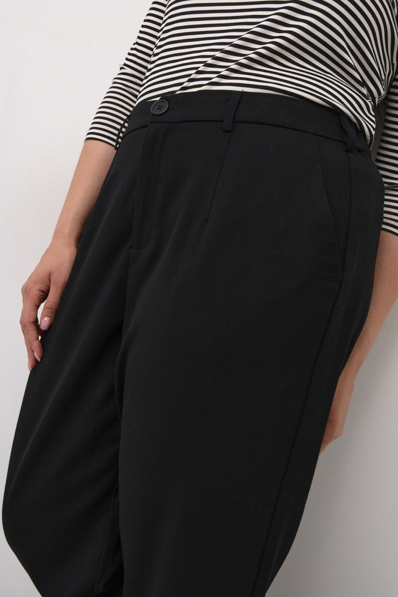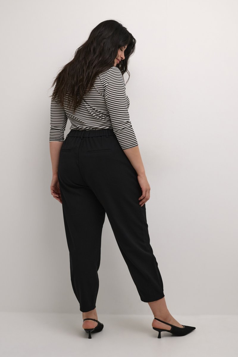 BroekVerkrijgbaar in maten 42–56Van het merk Kaffe CurveGemaakt van 64% polyester (gerecycled), 33% viscose, 3% elastaanLosse pasvormHet kleur is zwartKlik hier om de kledingmaatgids te tonen