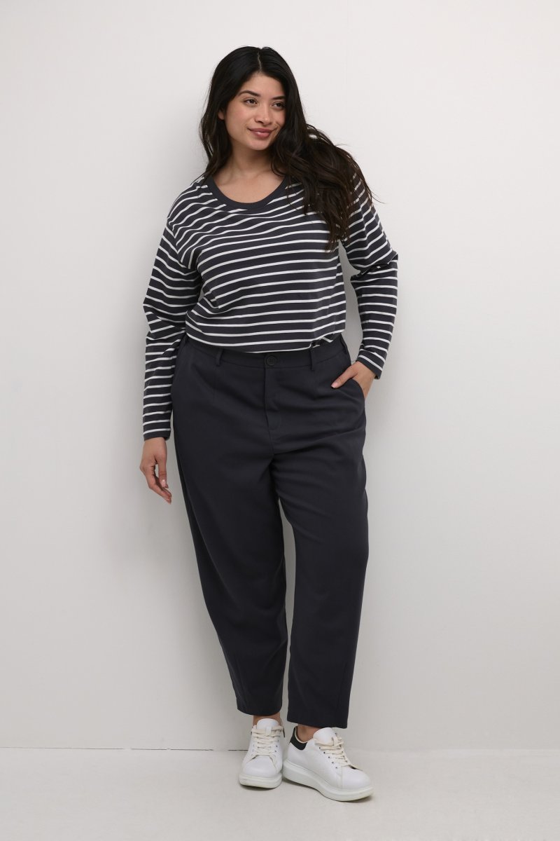 BroekVerkrijgbaar in maten 42–56Van het merk Kaffe CurveGemaakt van 64% polyester (gerecycled), 33% viscose, 3% elastaanLosse pasvormHet kleur is grijsKlik hier om de kledingmaatgids te tonen