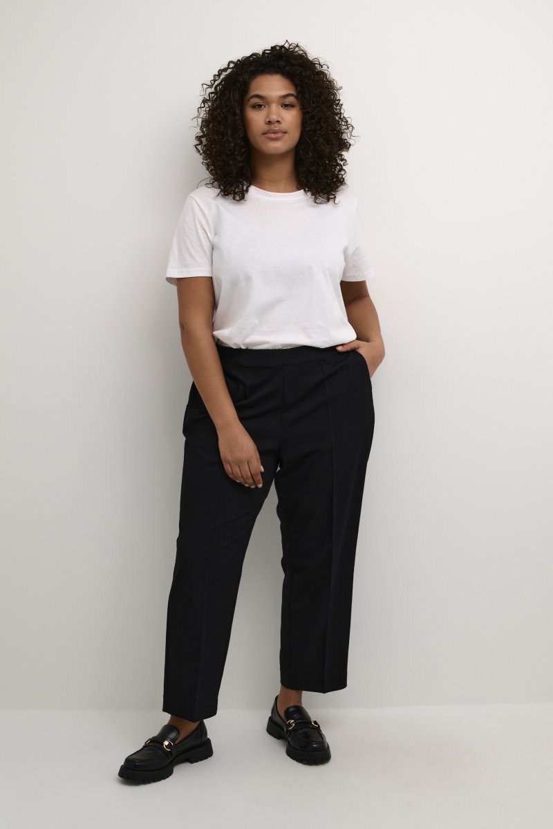 BroekVerkrijgbaar in maten 42–56Van het merk Kaffe CurveGemaakt van 77% polyester (gerecycled), 18% viscose, 5% elastaaNormale pasvormHet kleur is zwartKlik hier om de kledingmaatgids te tonen