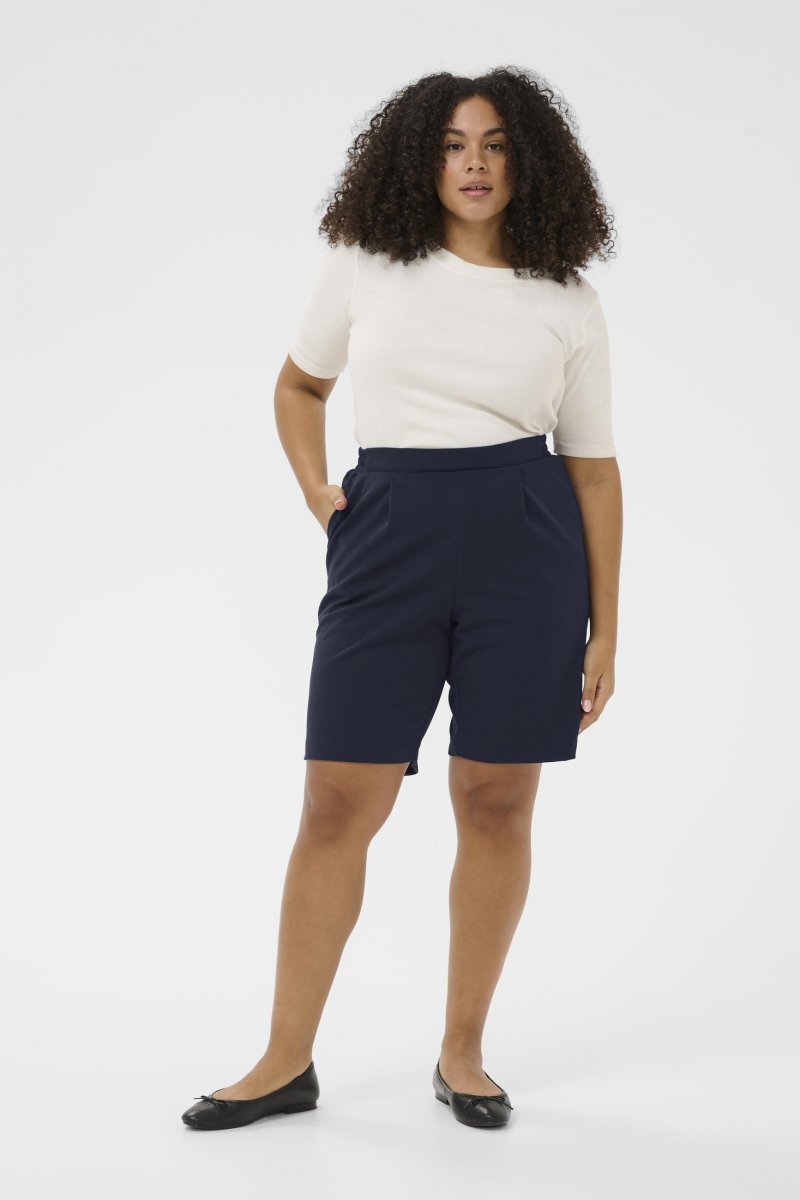 ShortsVerkrijgbaar in maten S–XLVan het merk Kaffe CurveMateriaal: 50 % polyester (gerecycled), 45 % polyester, 5 % elastaanLosse pasvormHet kleur is marineblauwKlik hier om de kledingmaatgids te tonen