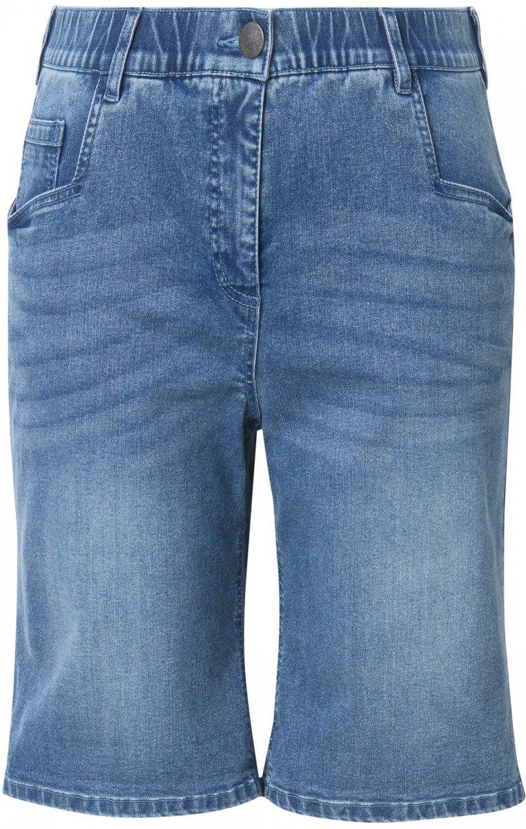 Kledingmaatgids - Ulla Popken Denim Wide Leg Elastic Waist Bermuda Shorts Blue Denim