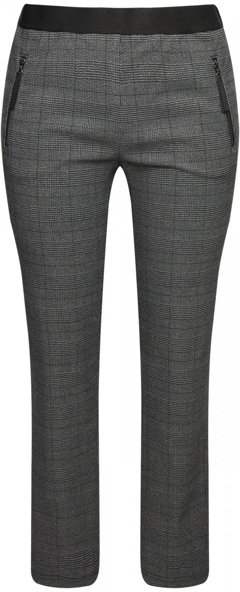 Ulla Popken Plaid Elastic Waist Tapered Leg Pants Black