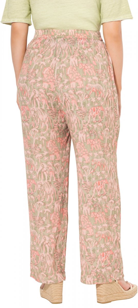 Ulla Popken Safari Print Elastic Waist Pants Green
