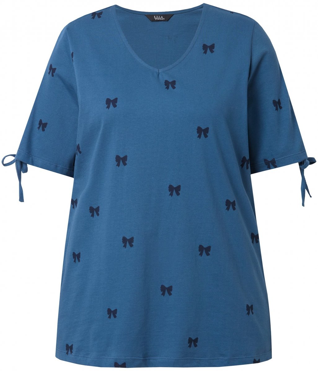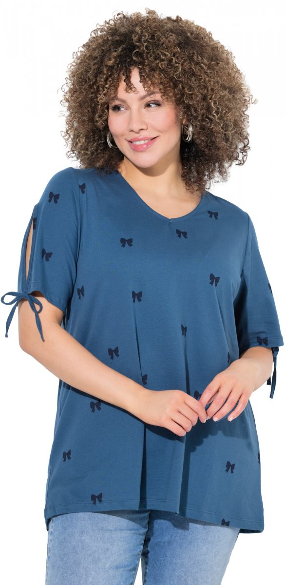 Kledingmaatgids - Ulla Popken Bow Print Split Sleeve Tee Indigo Denim