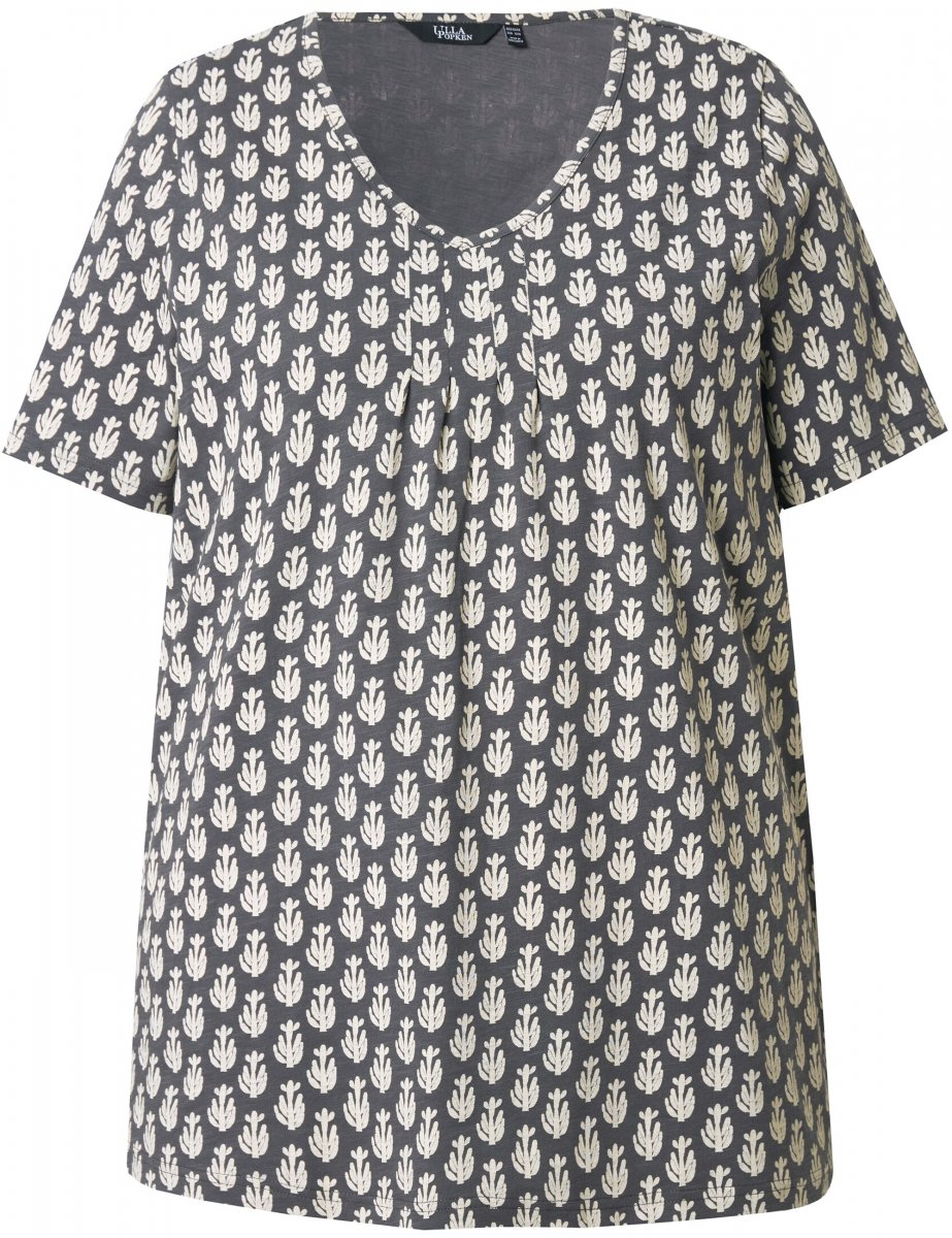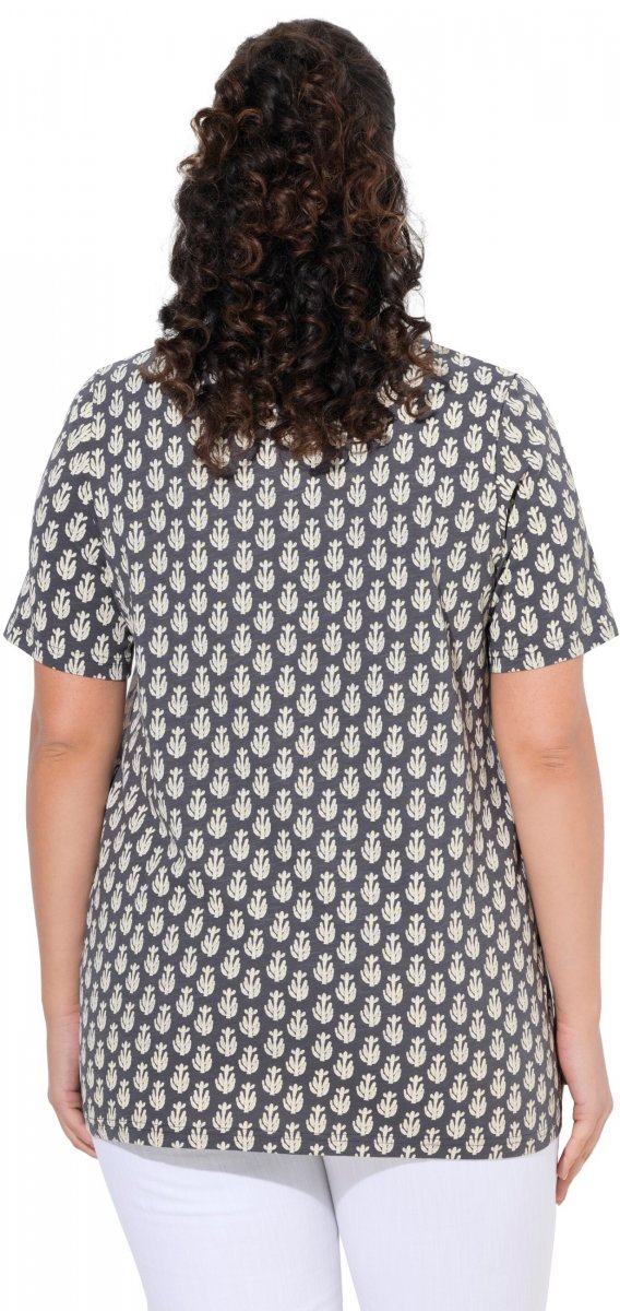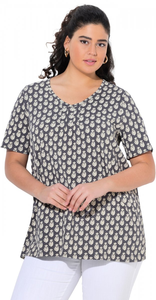 Kledingmaatgids - Ulla Popken Cactus Print Short Sleeve V-Neck Tee Graphite Grey