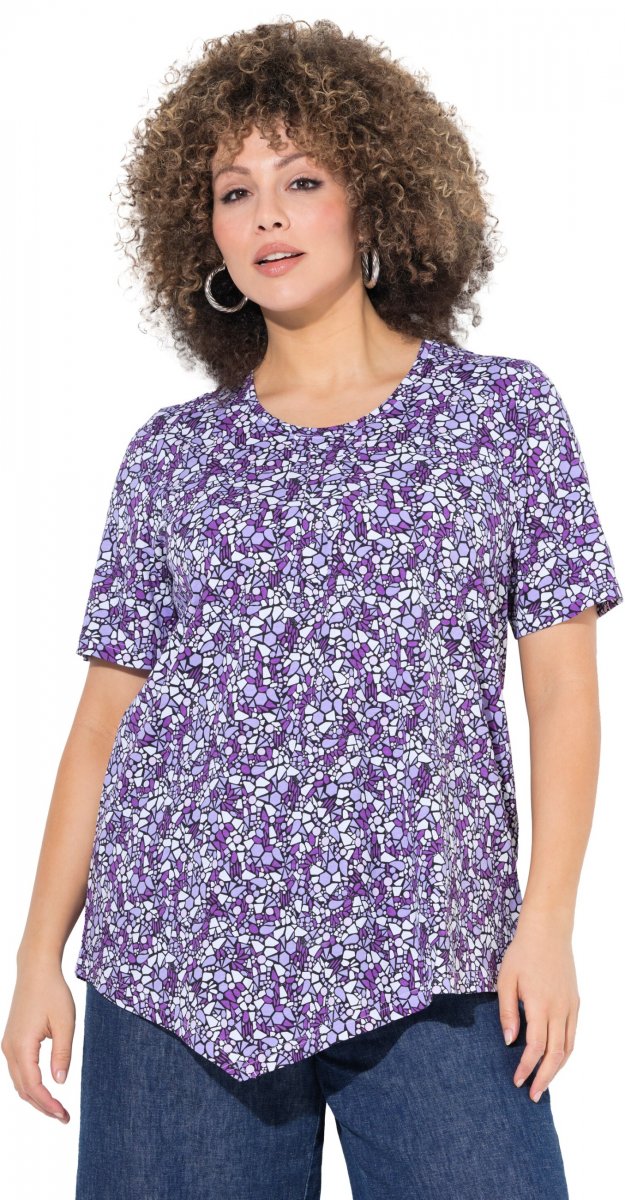 Kledingmaatgids - Ulla Popken Floral Pointed Hem Short Sleeve Tee Purple