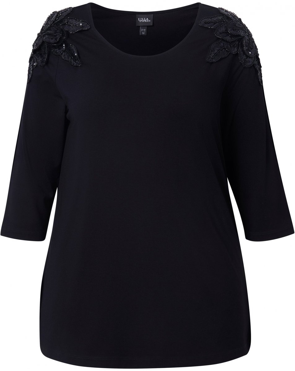 Kledingmaatgids - Ulla Popken Flower Epaulet 3/4 Sleeve Top Black
