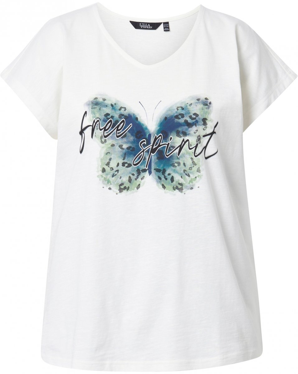 Kledingmaatgids - Ulla Popken Free Spirit Butterfly Cap Sleeve Graphic Tee Off-White