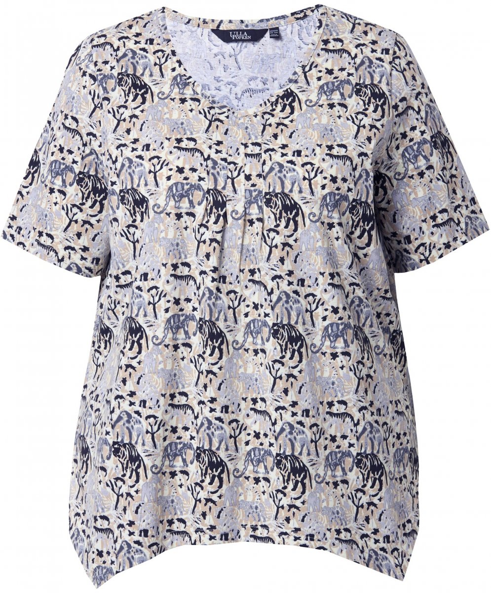 Kledingmaatgids - Ulla Popken Half-sleeve A-line V-neck Pointed Hem Animal Pattern T-shirt Moss