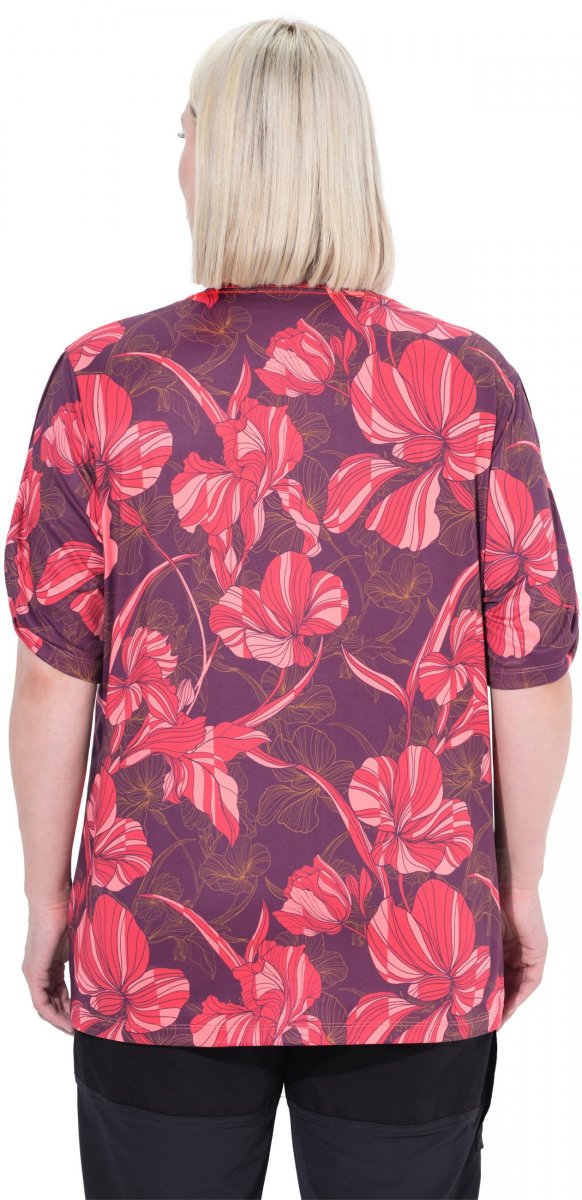 Kledingmaatgids - Ulla Popken Quick Drying Flower Print Short Sleeve Tee Dark Cherry