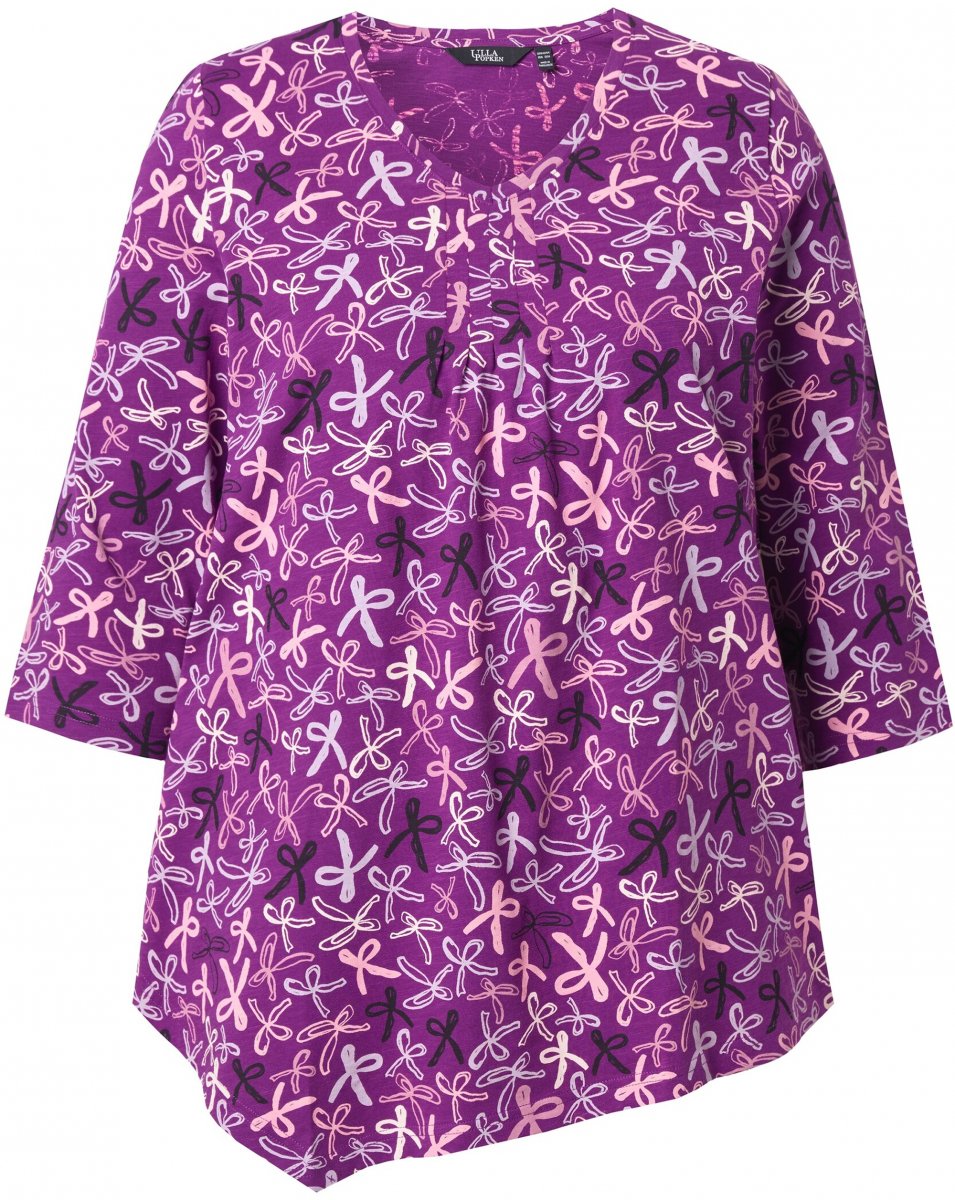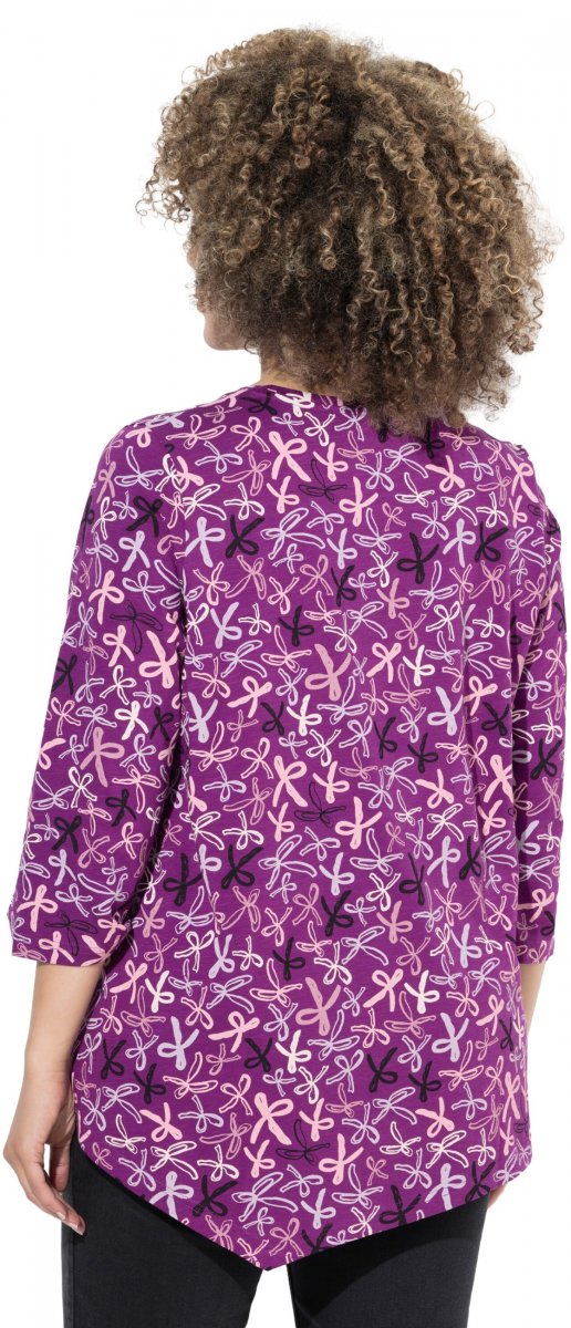 Kledingmaatgids - Ulla Popken Ribbon Print 3/4 Sleeve Asymmetric Tee Light Plum