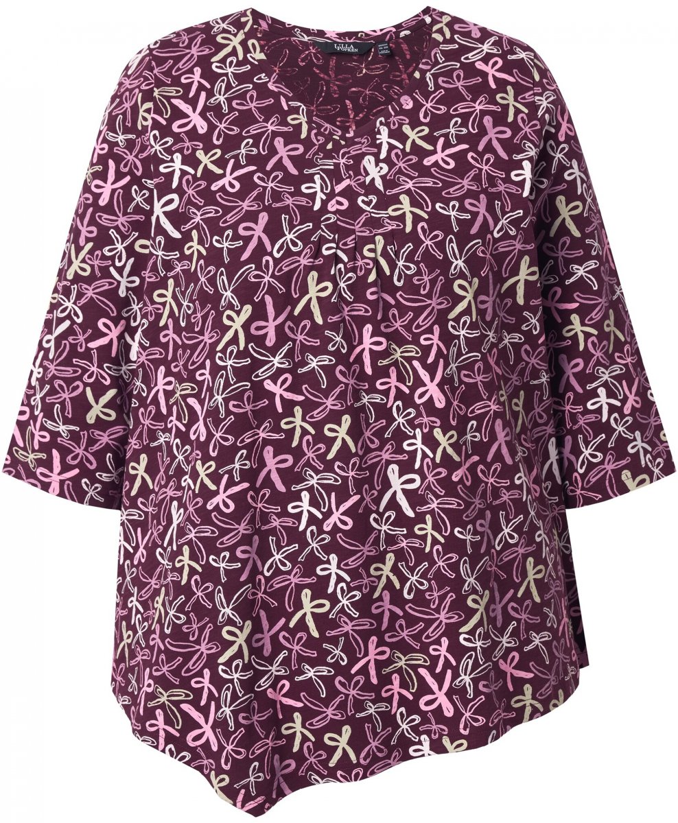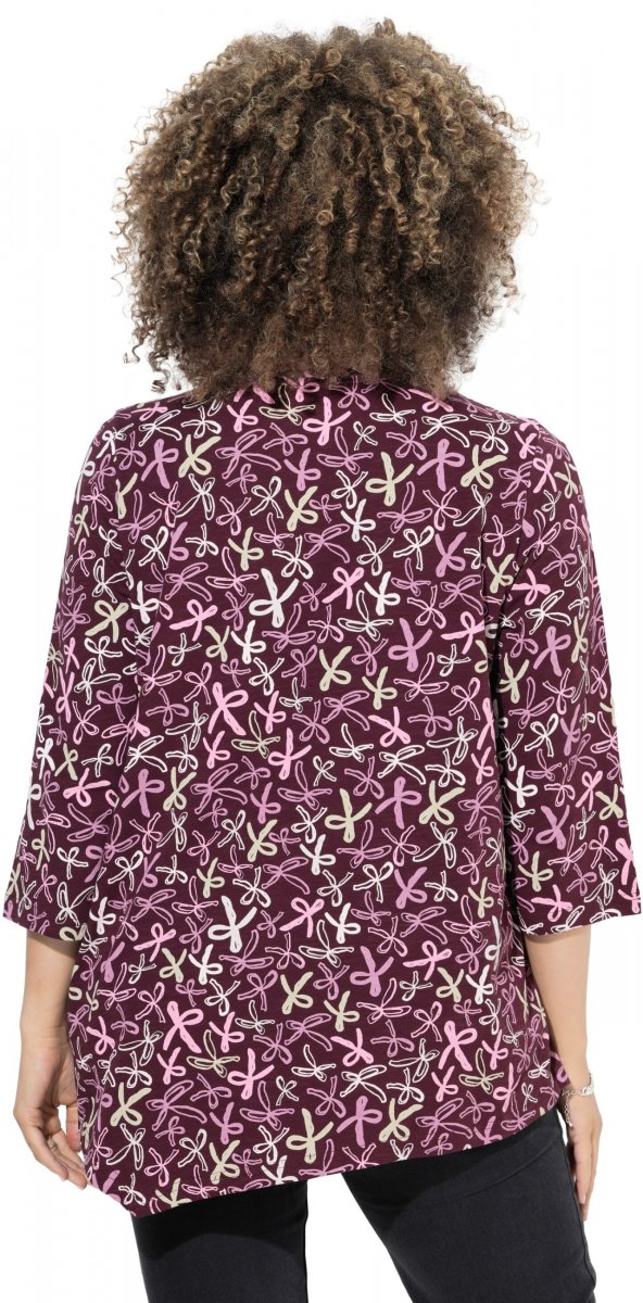 Kledingmaatgids - Ulla Popken Ribbon Print 3/4 Sleeve Asymmetric Tee Plum