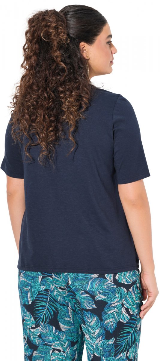 Kledingmaatgids - Ulla Popken Ride The Wave Short Sleeve V-Neck Graphic Tee Navy Blue