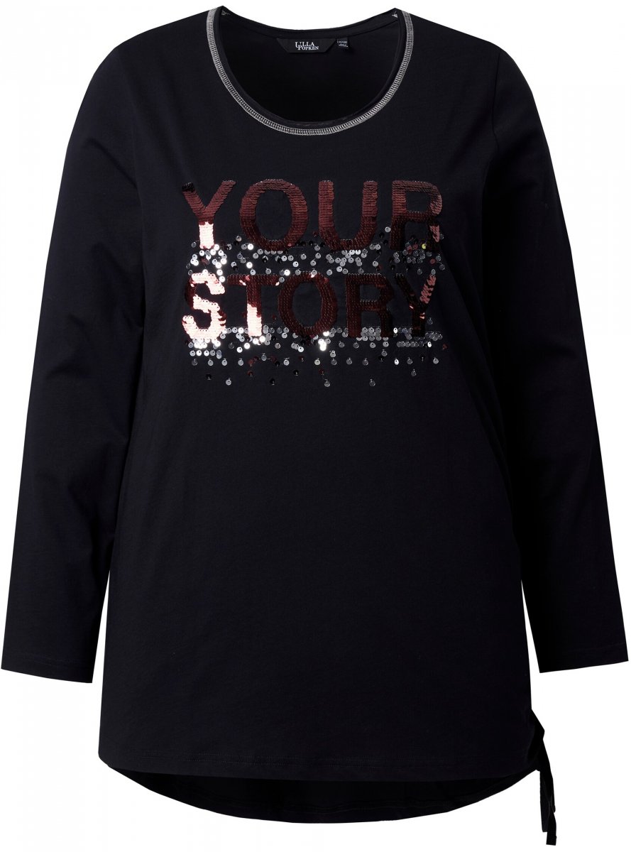 Kledingmaatgids - Ulla Popken Your Story Sequined Long Sleeve Tunic Tee Black