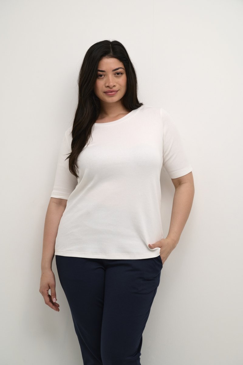 T-shirtVerkrijgbaar in maten S–XLVan het merk Kaffe CurveGemaakt van 95% katoen en 5% elastaanSlim pasvormHet kleur is witKlik hier om de kledingmaatgids te tonen