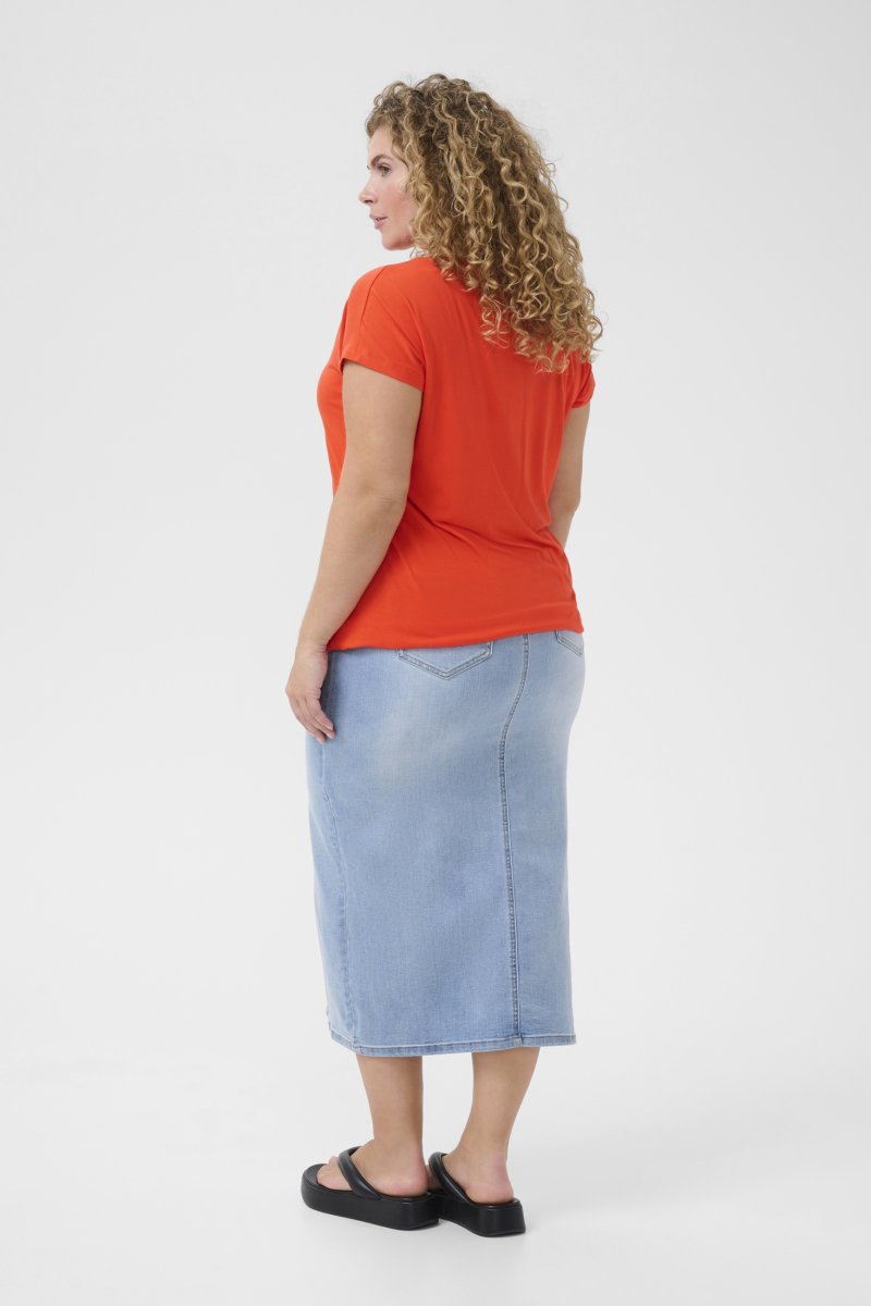 T-shirtVerkrijgbaar in maten S–XLVan het merk Kaffe CurveGemaakt van 95% viscose en 5% elastaanLosse pasvormHet kleur is roodKlik hier om de kledingmaatgids te tonen