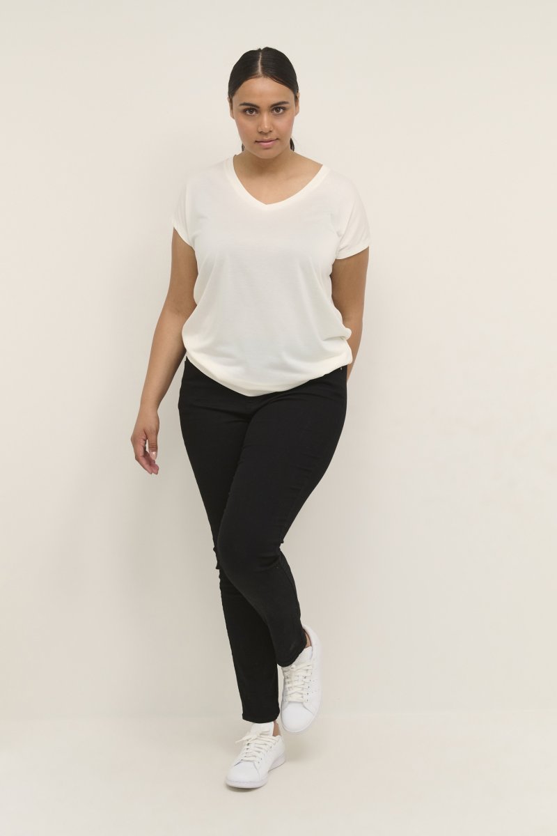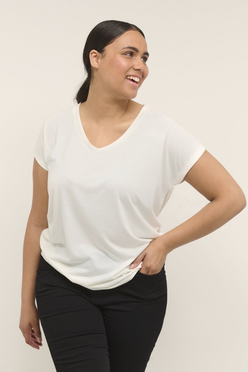 T-shirtVerkrijgbaar in maten S–XLVan het merk Kaffe CurveMateriaal: 70 % modal, 30 % polyesterLosse pasvormHet kleur is witKlik hier om de kledingmaatgids te tonen