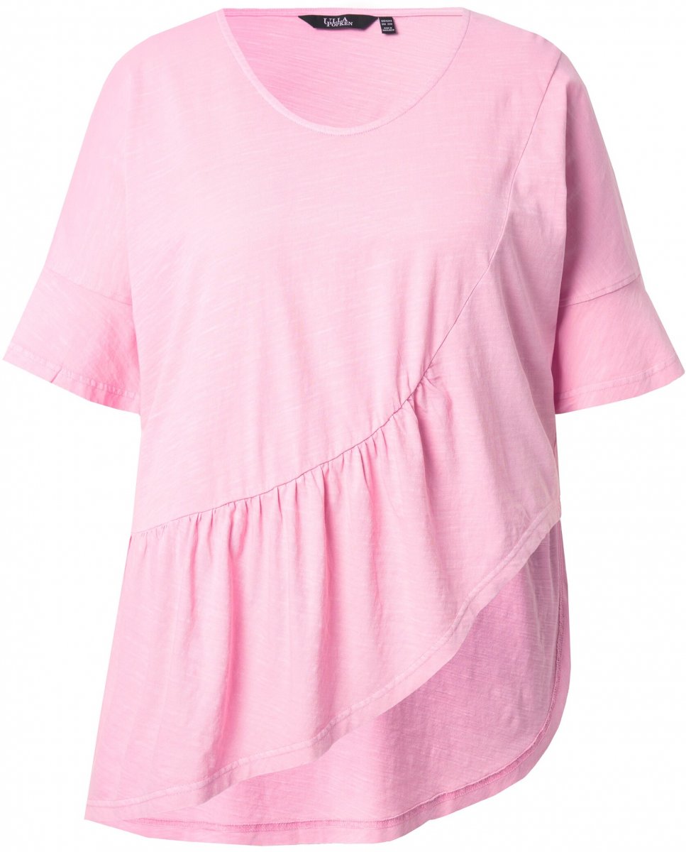 Kledingmaatgids - Ulla Popken Asymmetric Flounce Panel Short Sleeve Tee Pink