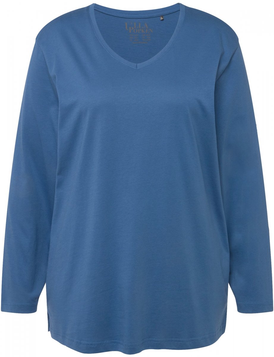 Kledingmaatgids - Ulla Popken Back To Basics V-Neck Relaxed Fit Cotton Tee Denim Blue