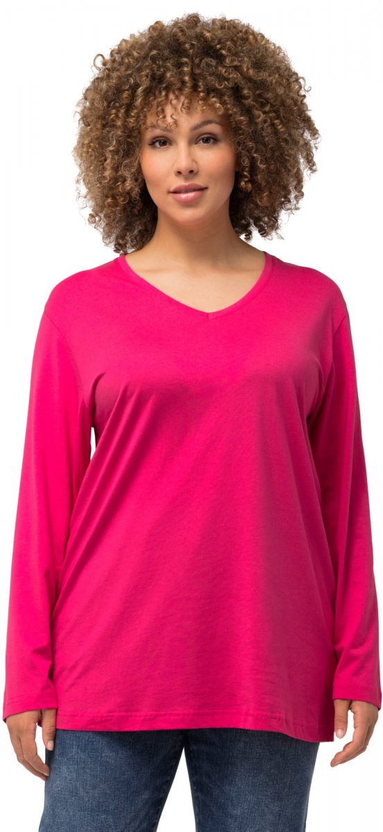 Kledingmaatgids - Ulla Popken Back To Basics V-Neck Relaxed Fit Cotton Tee Magenta Pink