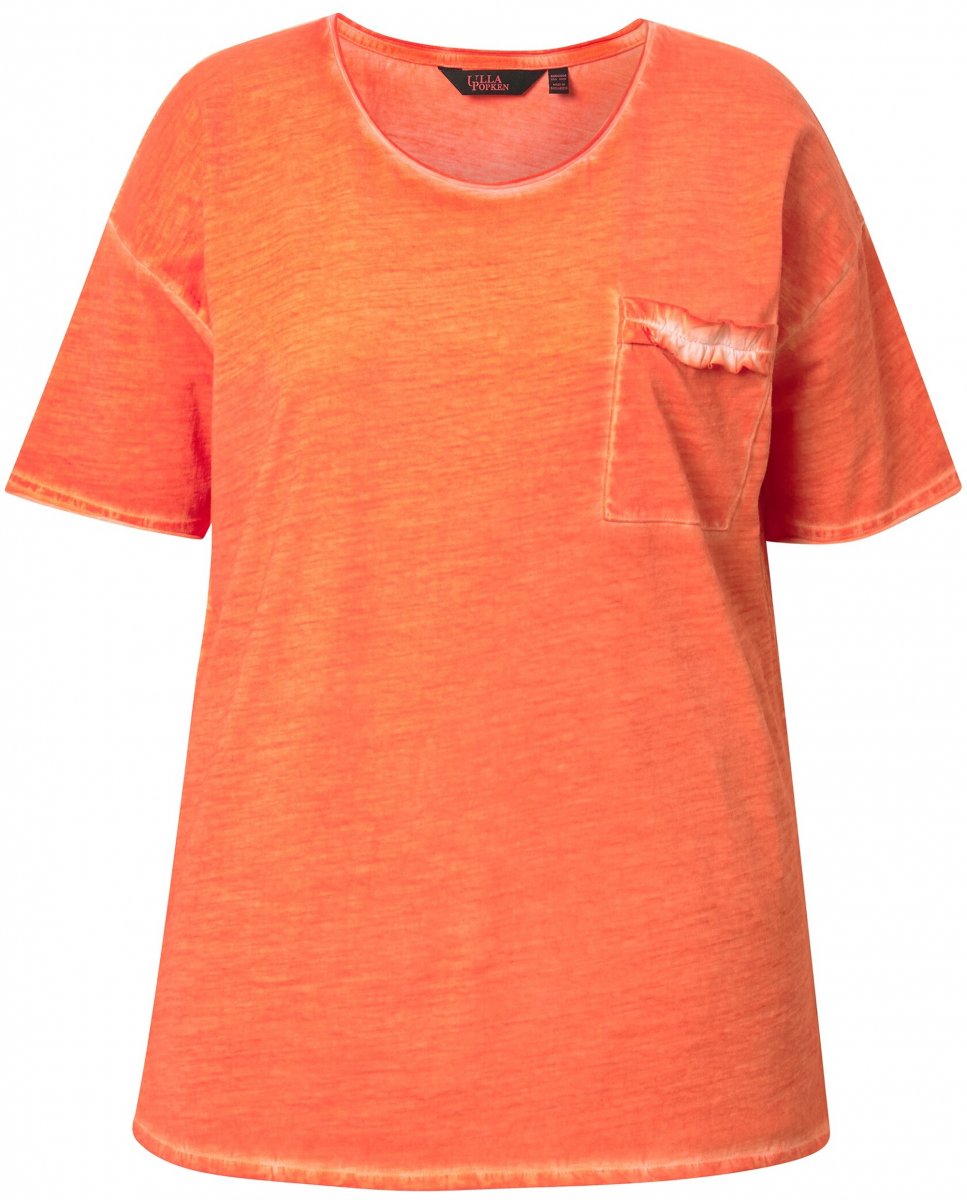 Kledingmaatgids - Ulla Popken Cold Dye Ruffle Edge Pocket Tee Coral Pink