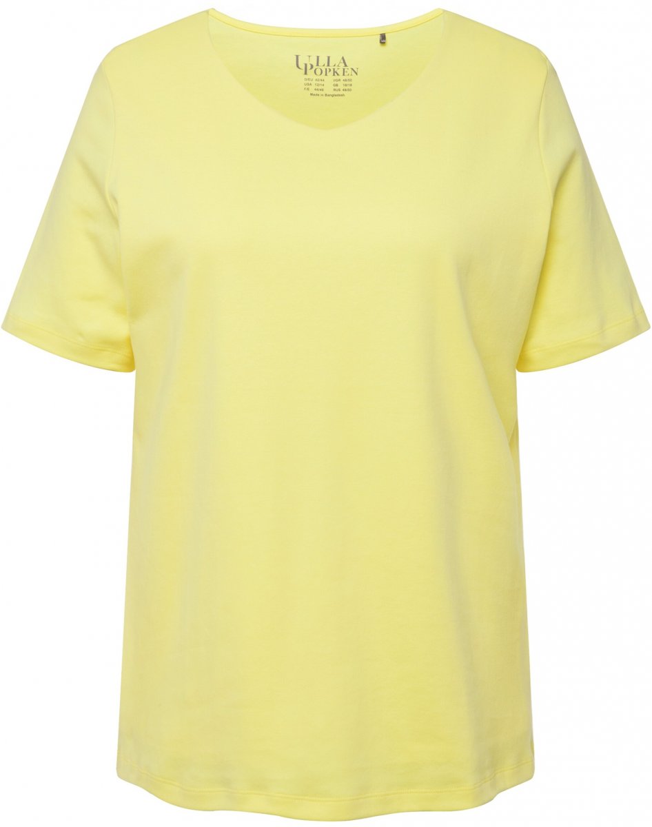 Kledingmaatgids - Ulla Popken Double Layer Rounded V-Neck Slim Fit Tee Lemon Yellow
