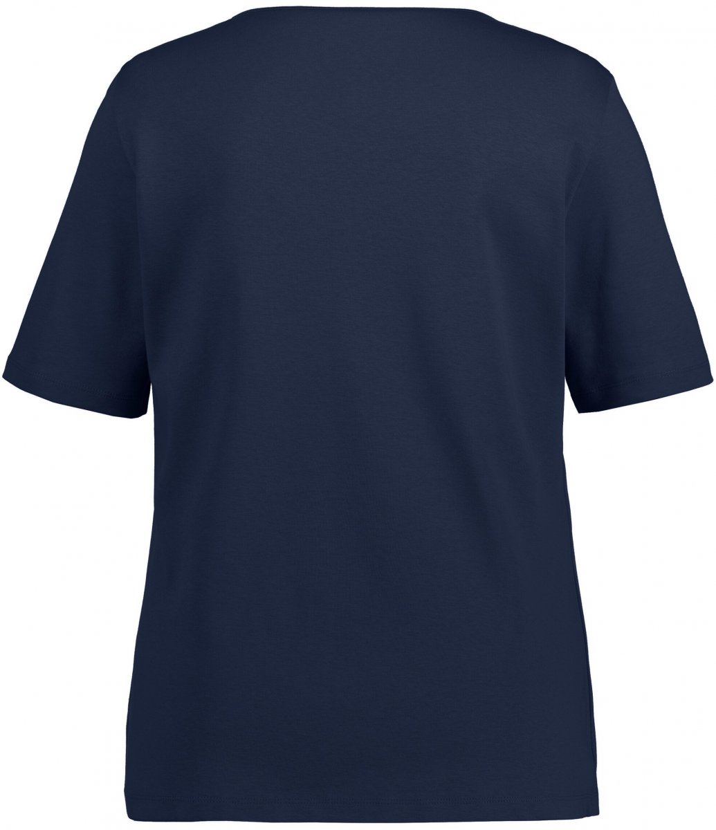 Ulla Popken Double Layer Rounded V-Neck Slim Fit Tee Navy Blue
