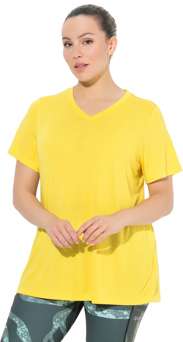 Kledingmaatgids - Ulla Popken Functional Antibacterial Finish V-Neck Short Sleeve Knit Top Sun Yellow