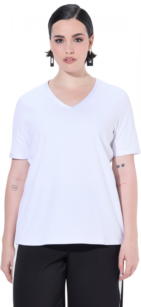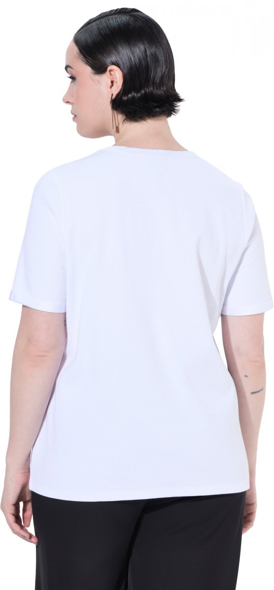 Kledingmaatgids - Ulla Popken Satin Trimmed Ribbed Jersey Short Sleeve T-Shirt Snow White