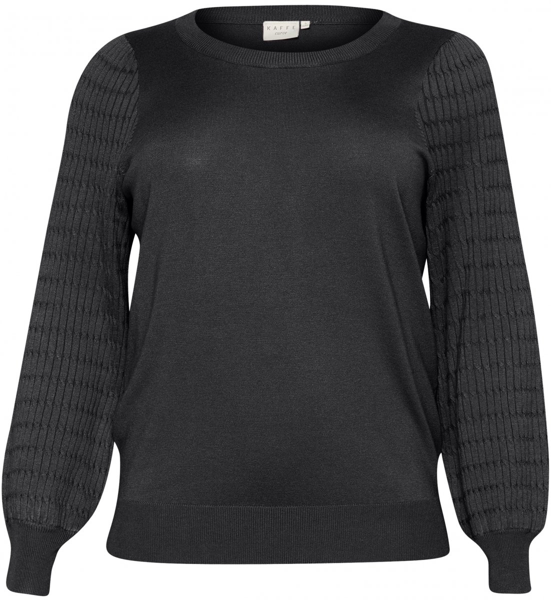 Gebreide truiVerkrijgbaar in maten S–XLVan het merk Kaffe CurveGemaakt van 80% viscose en 20% nylonNormale pasvormHet kleur is koolzwartKlik hier om de kledingmaatgids te tonen