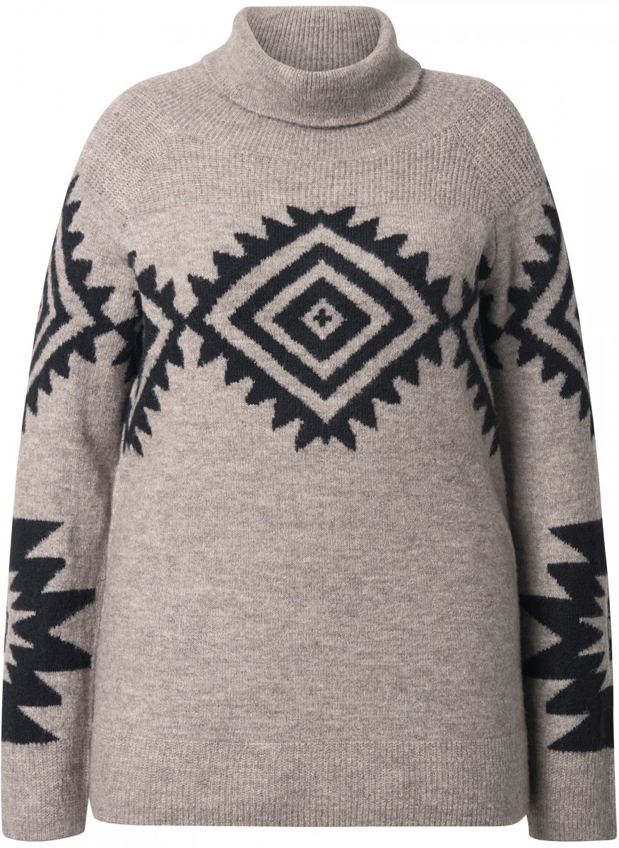 Kledingmaatgids - Ulla Popken Aztec Pattern Turtleneck Sweater Pebble Grey