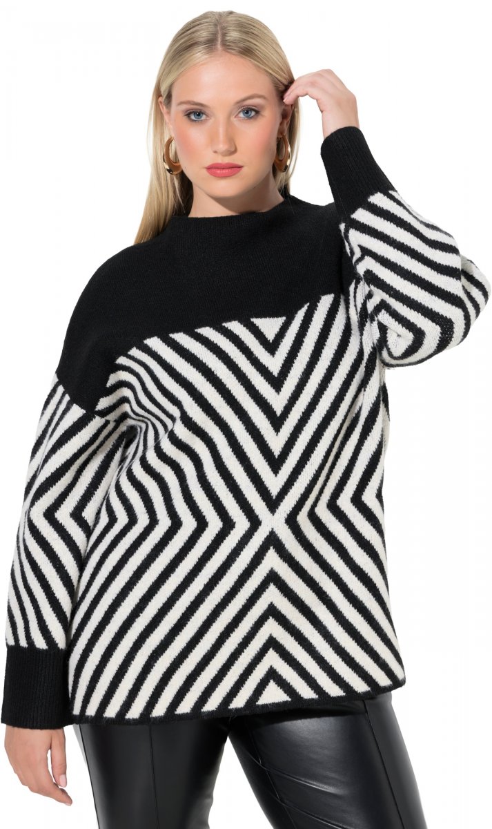 Kledingmaatgids - Ulla Popken Graphic Stripe Long Sleeve Turtleneck Sweater Black