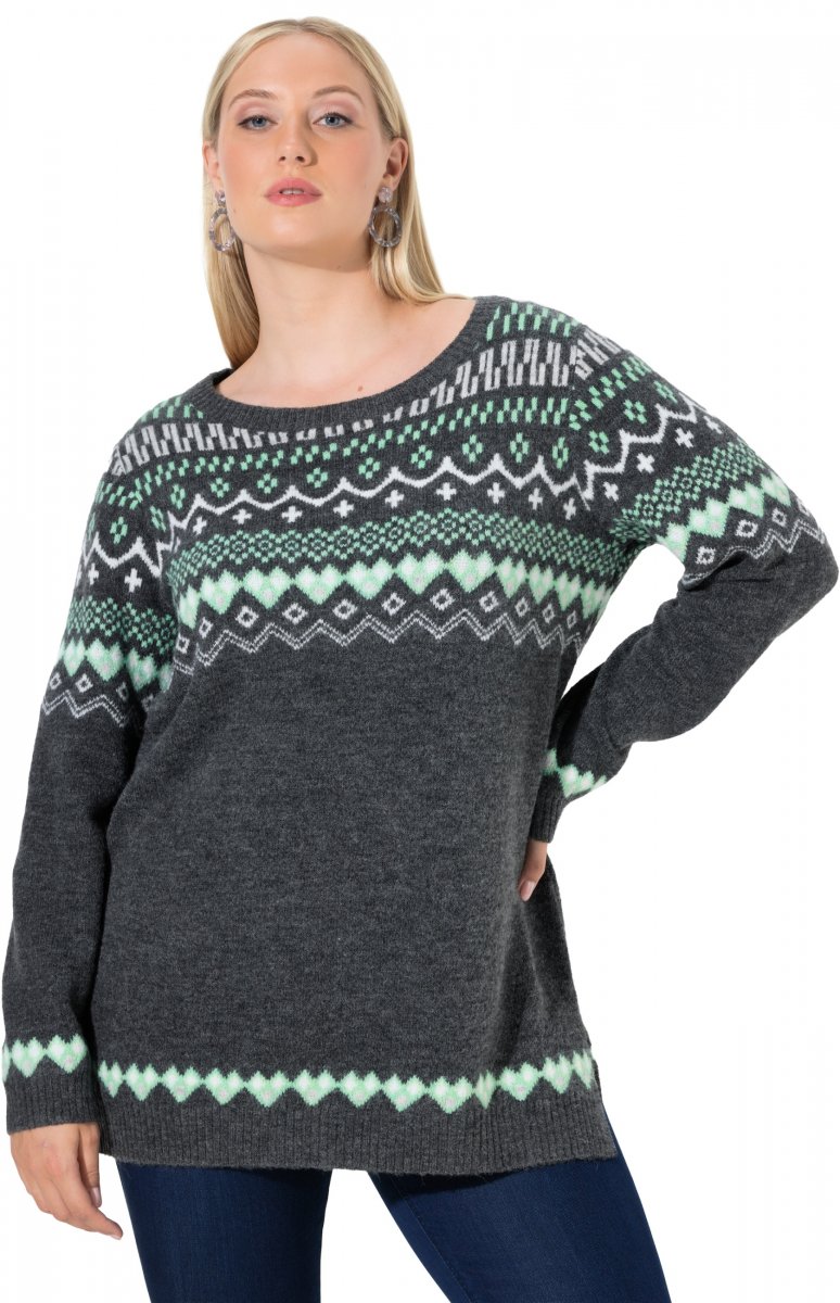 Kledingmaatgids - Ulla Popken Norwegian Style Pastel Tone Long Sleeve Sweater Dark Grey Melange