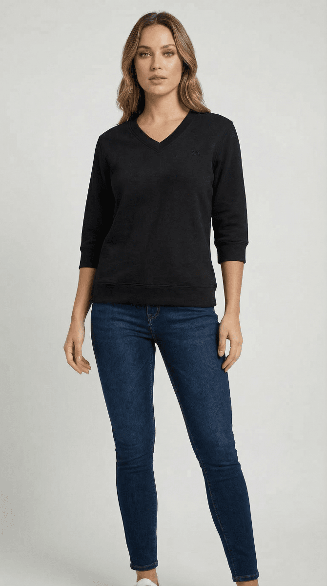 Dames-sweatshirtVerkrijgbaar in maten S-XXLVan het merk Nora MikkenGemaakt van 60% katoen, 40% polyesterNormale pasvormHet kleur is zwartKlik hier om de kledingmaatgids te tonen