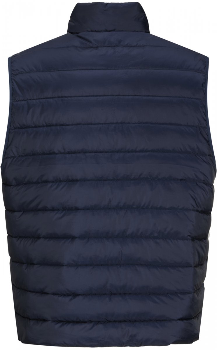 Bodywarmer in grote matenBij ons te koop in de maten 3XL-8XLVan het bekende Deense merk JACK & JONESGemaakt van 100% polyester – gerecycledHet kleur is marineblauwWassen op 30°CelsiusSeizoenskledij - kledingmaten worden niet opnieuw aangevuld