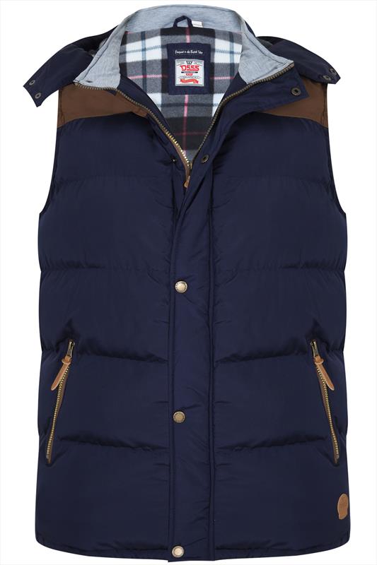 D555 FELIPE Zip Through Padded Gilet With Contrast Colour Lining And Rubber Badge Black