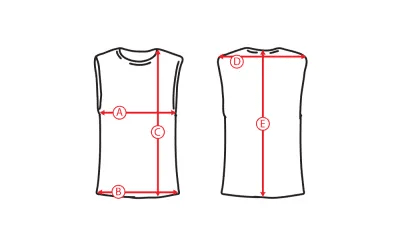 B - body width is measured edge to edge at the bottom of the garment