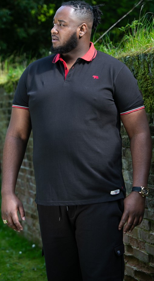 Grote maten PoloKoop het bij ons in de maten 2XL-6XLVan het coole Britse merk D555Vervaardigd uit katoen/polyesterHet kleur is zwartWassen op 30°CelsiusSeizoenskledij - kledingmaten worden niet opnieuw aangevuldKlik hier om de kledingmaatgids te tonen