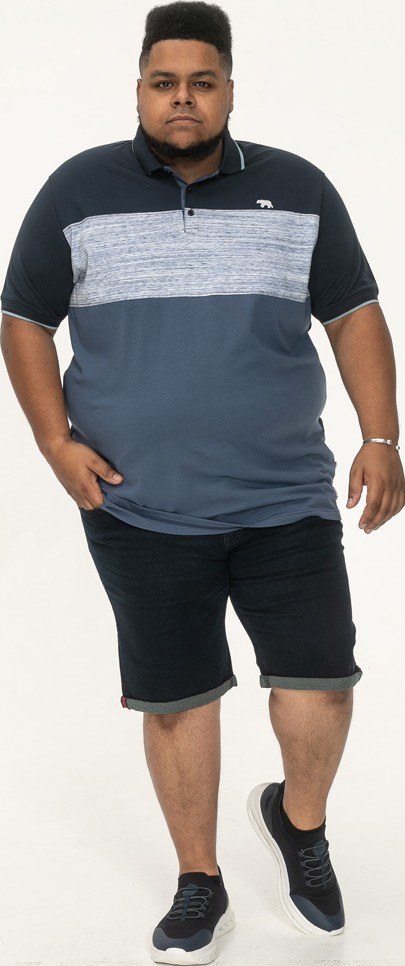 Kledingmaatgids - D555 Leeds Cut And Sew Polo With Jacquard Collar And Cuffs Navy