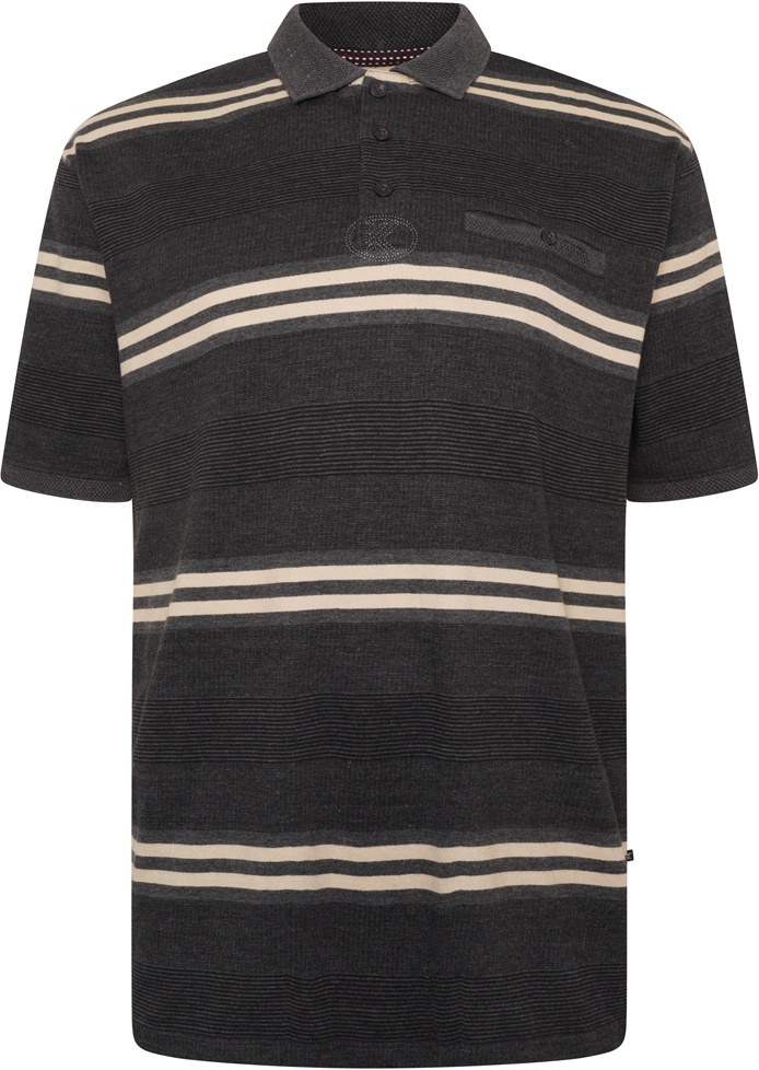 Kledingmaatgids - Kam Jeans 5506 Stripe Rugby Polo With Jacquard Collar & Cuffs Charcoal