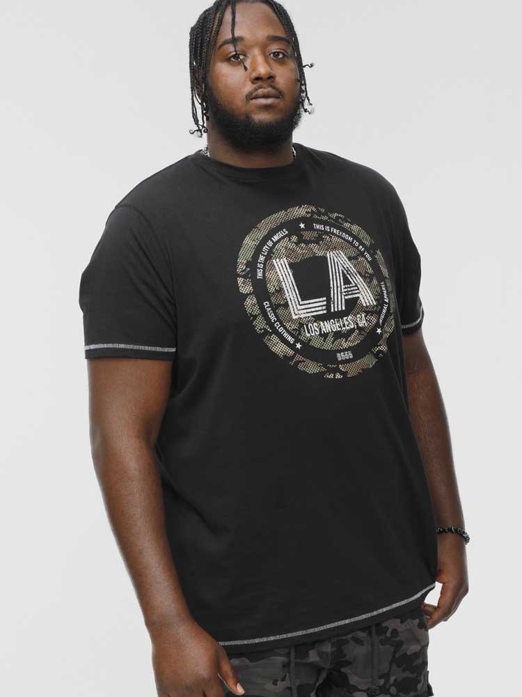Kledingmaatgids - D555 BENNY LA Camo Printed Crew Neck T-Shirt Black