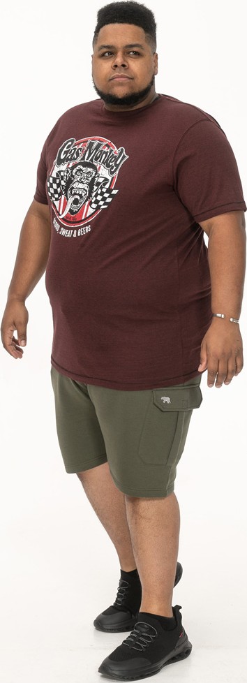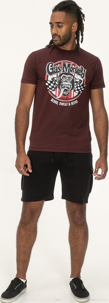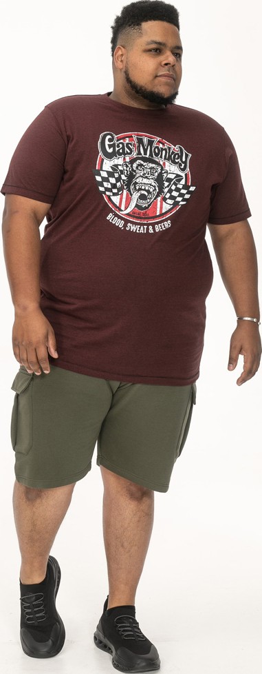 Kledingmaatgids - D555 Loughborough Official Gas Monkey Crew Neck T-Shirt Burgundy Black Twist