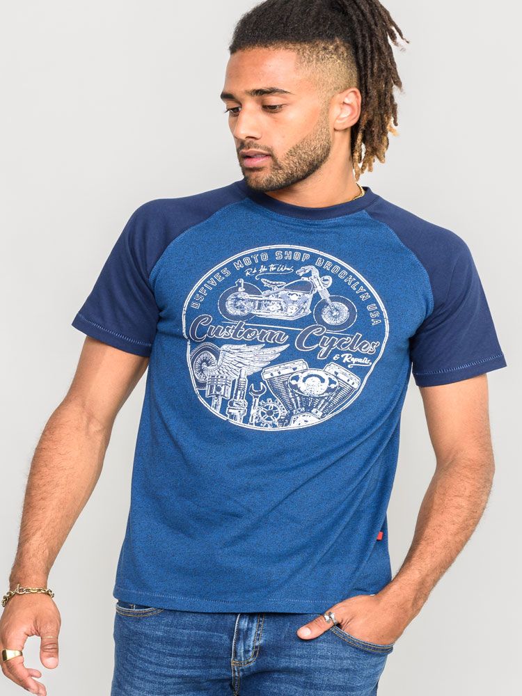 Kledingmaatgids - D555 Porter Raglan Sleeve Printed T-Shirt Blue