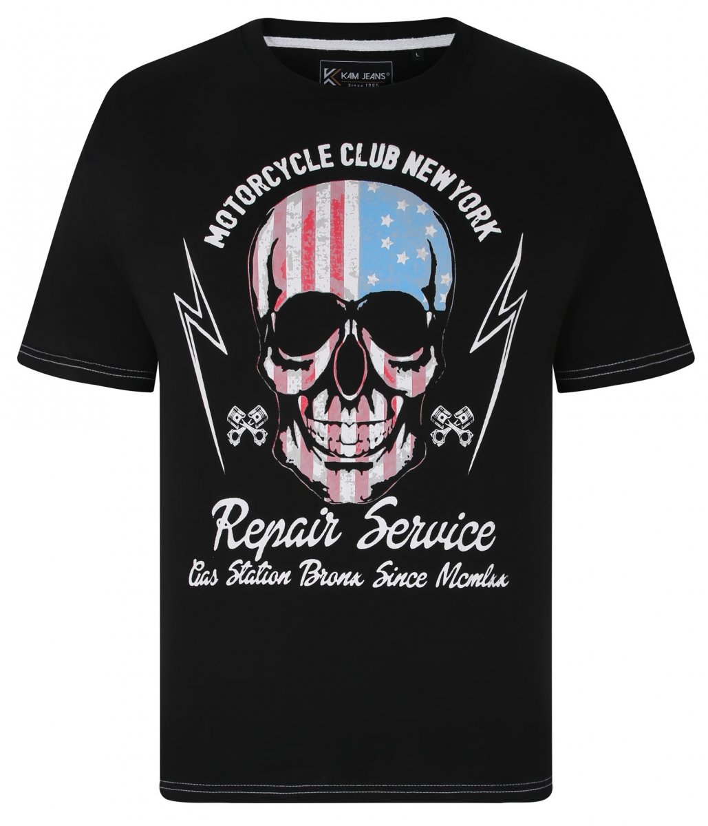 Kledingmaatgids - Kam Jeans 5733 USA Skull Print T-Shirt Black