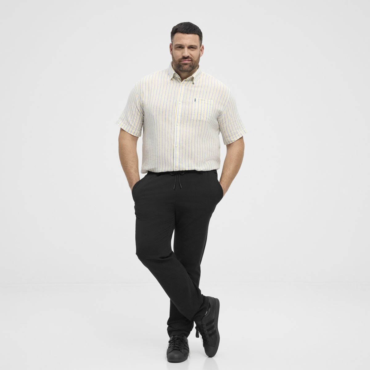 Grote maten BroekKoop het bij ons in de maten 2XL-8XLVan het merk North LatitudeGemaakt van 54% linnen, 44% viscose en 2% elastaanHet kleur is zwartWassen op 30°CelsiusSeizoenskledij - kledingmaten worden niet opnieuw aangevuldKlik hier om de kledingmaatgids te tonen