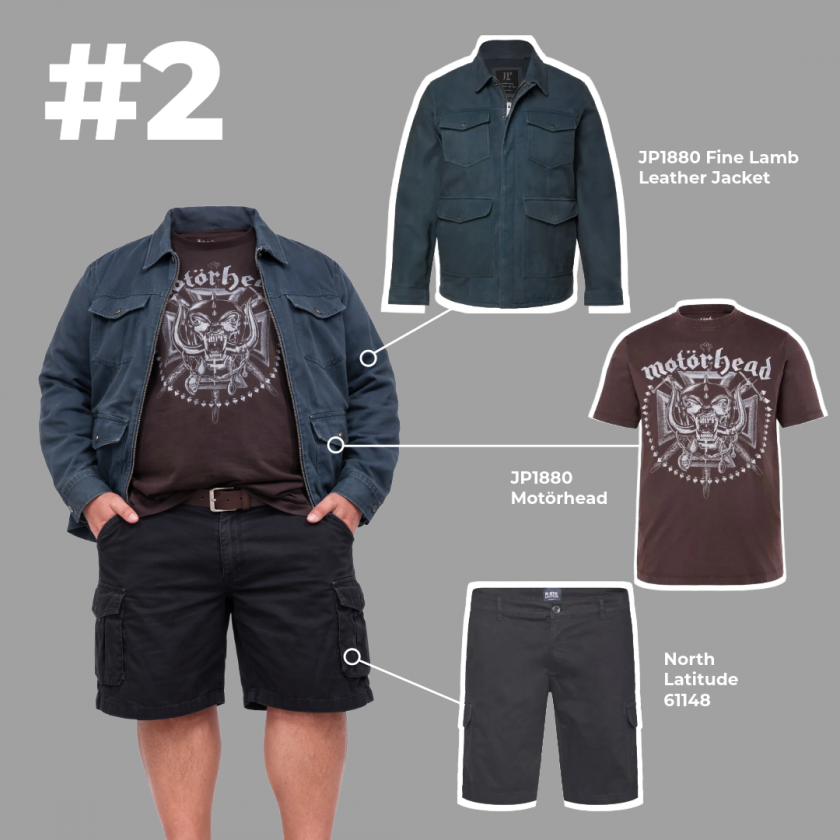 Een goede keuze voor koelere lentedagen. De jas geeft warmte, het T-shirt zorgt voor comfort en de cargoshorts bieden praktische zakken.