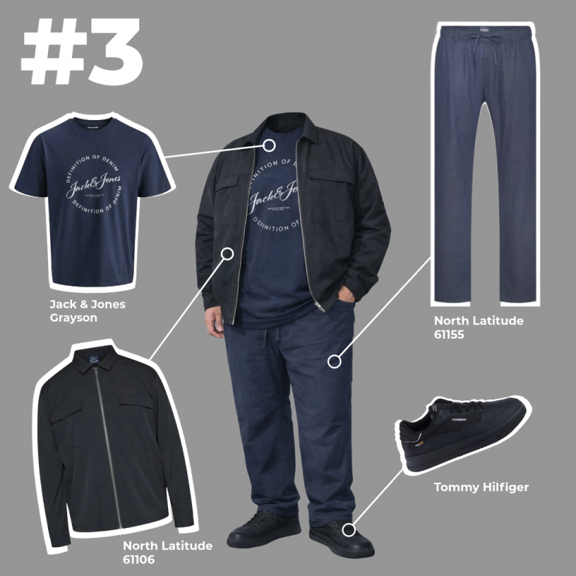 Dankzij de lichte lagen is deze outfit overdag eenvoudig aan te passen. Het T-shirt houdt de look rustig, het overhemd met korte mouwen geeft wat extra warmte en de korte jeansshorts met sneakers zorgen voor dagelijks comfort.
