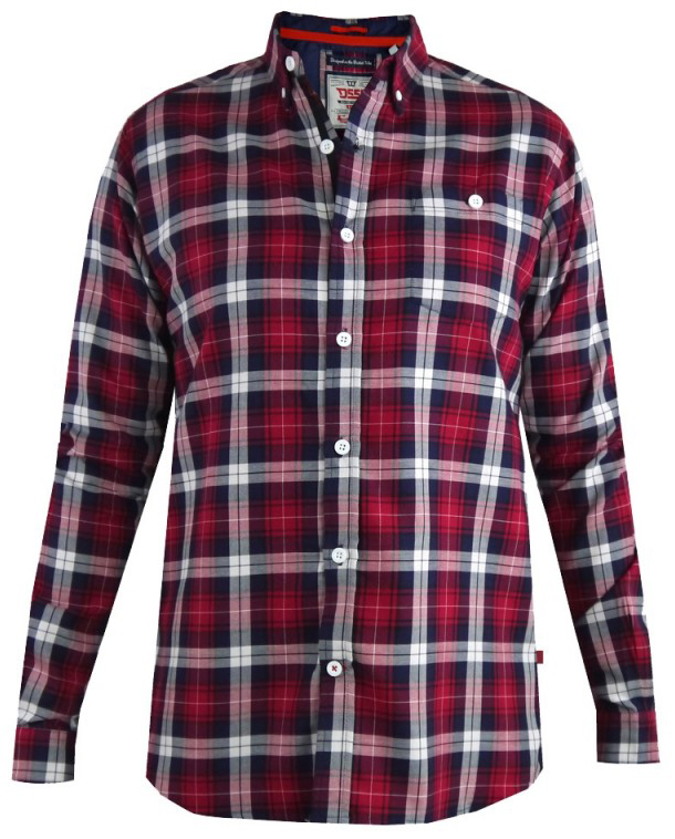 Grote maten HemdKoop het bij ons in de maten 2XL-6XLVan het coole Britse merk D555Gemaakt van 100% katoenHet kleur is roodWassen op 30°CelsiusHet hemd heeft een borstzakjeSeizoenskledij - kledingmaten worden niet opnieuw aangevuldKlik hier om de kledingmaatgids te tonen