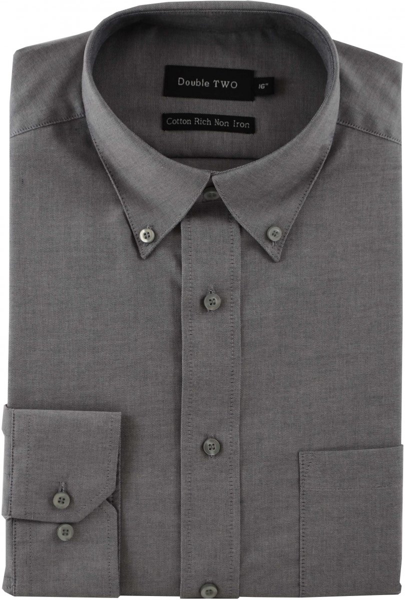 Double TWO Non-Iron Oxford Long Sleeve Grey