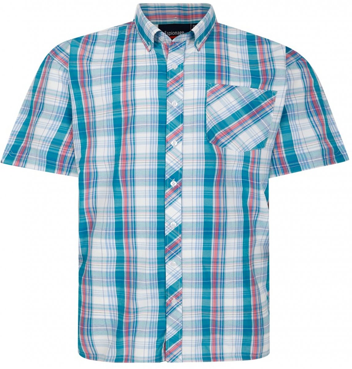 Kledingmaatgids - Espionage SH443 Checked Short Sleeve Shirt Green/Pink/White